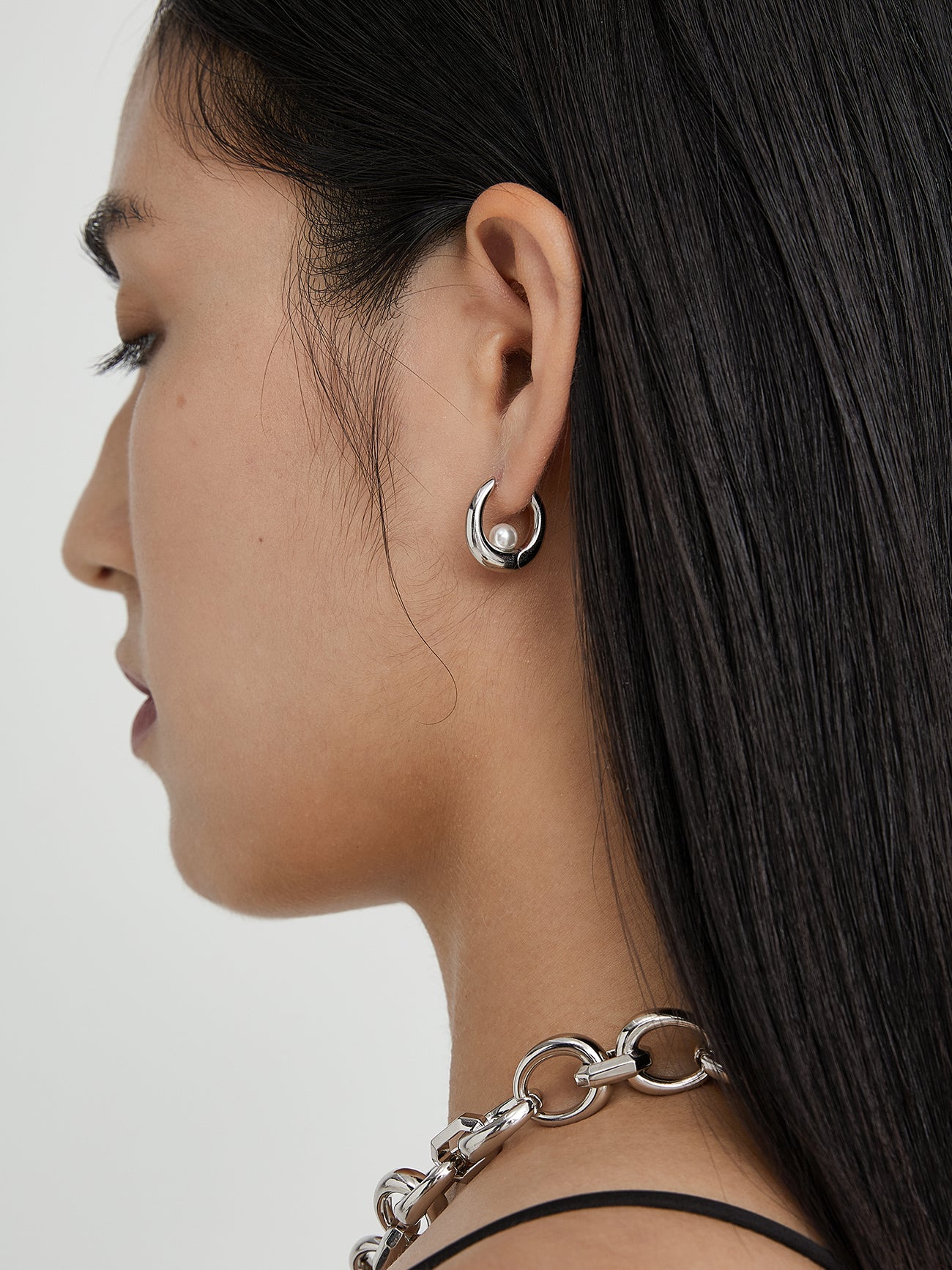 Floating Pearl Hoop Earring